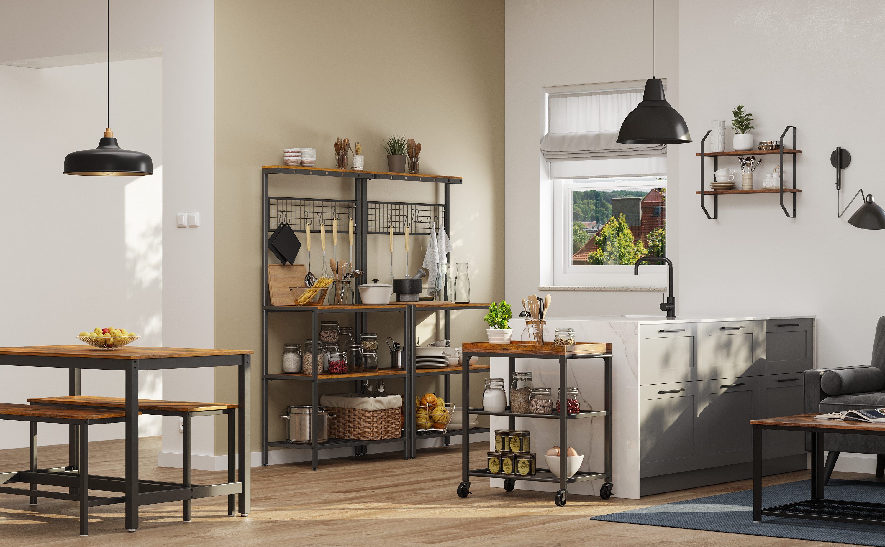 för kulinariska höjdpunkter. Andra praktiska möbler som kökshyllor, matbord eller en serveringsvagn är också en välsignelse för atmosfären i ditt kök